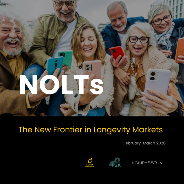 Research about the New Older Living Trends concept and its implications for different industry segments. The research was led by the Lemon, Dare to Imagine team and supported by KOMPASSIUM’s global network of experts and the 40+Lab team.